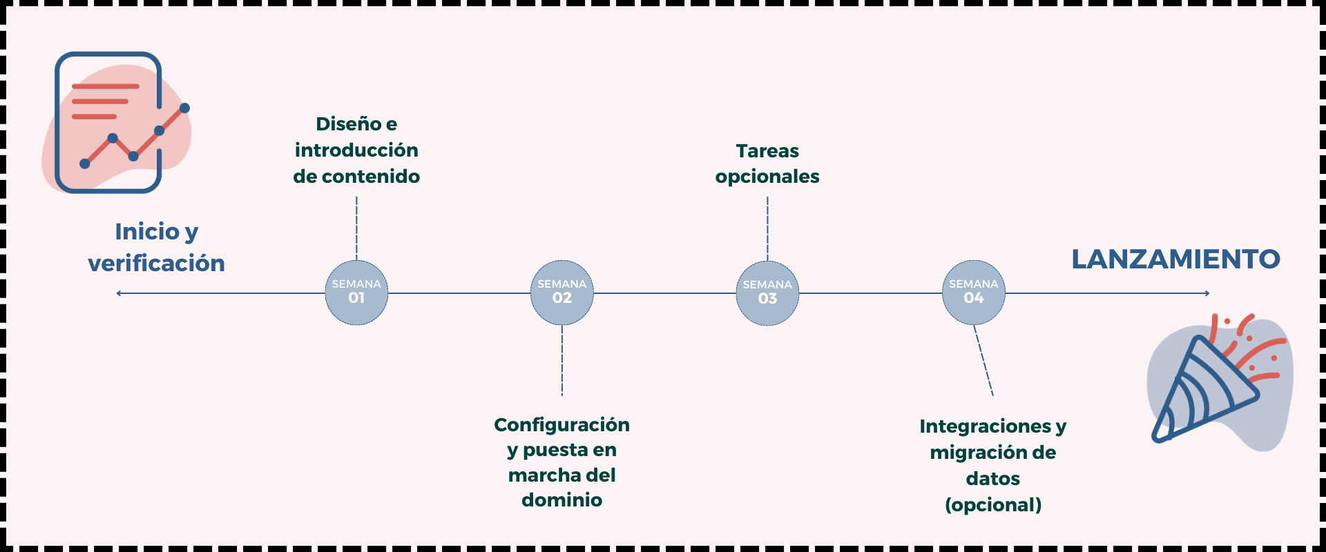 Te guiaremos a través de todo el proceso de incorporación, incluidos los plazos, las tareas obligatorias, las integraciones opcionales y qué esperar después de la puesta en marcha.